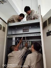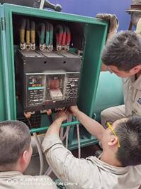 然而,我們能等,客戶不能等,8月因限電以來,部分項目已出現(xiàn)了拖期現(xiàn)象。面對繁重的生產(chǎn)任務(wù),裝備公司各級領(lǐng)導(dǎo)可謂焦急萬分,經(jīng)研究最終決定租賃發(fā)電機保生產(chǎn)。8月19日,緊急聯(lián)系的兩臺發(fā)電機順利到貨,設(shè)備管理室人員立即開展緊張調(diào)試工作,解燃眉之急。當(dāng)天氣溫高達43℃,要完成接線,設(shè)備管理室人員需先斷開市政電源,在沒有空調(diào)風(fēng)扇、封閉的設(shè)備操作間內(nèi)頂著高溫調(diào)試。在非常人能忍受的高溫之下,他們從19日早上一直工作到20日凌晨,終于確保了20日按時恢復(fù)生產(chǎn)供電,生產(chǎn)系統(tǒng)正式復(fù)工復(fù)產(chǎn)。